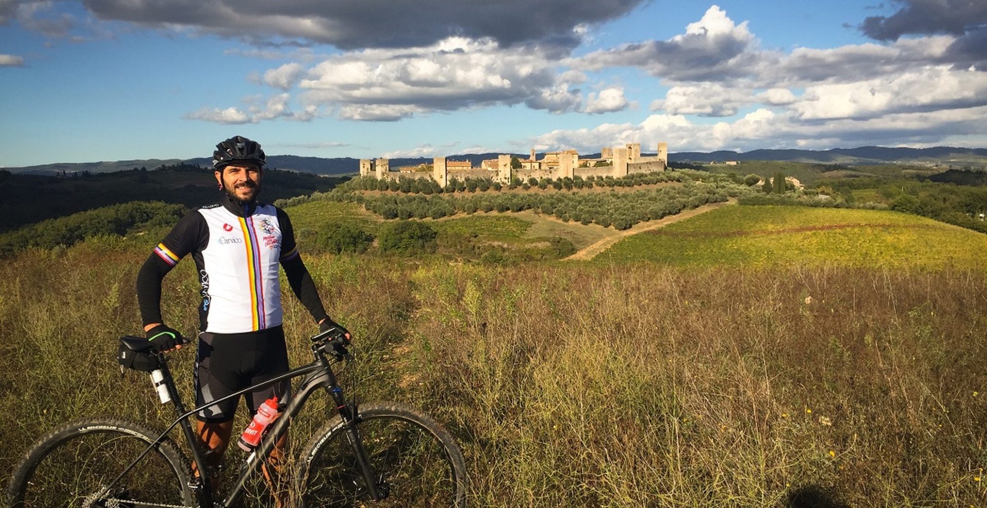 Un percorso totalmente collinare dove pedalerete circondati da vigneti e uliveti e visiterete posti ricchi di storia come San Gimignano, Monteriggioni e Siena.