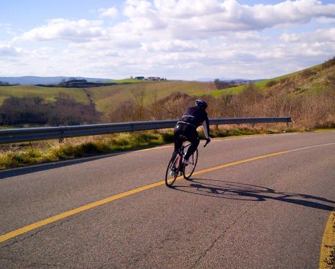 Pedalando verso Montalcino, paese medievale circondato da vigneti pregiati e patria del Brunello.